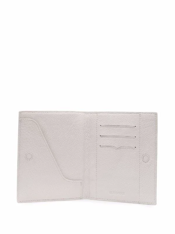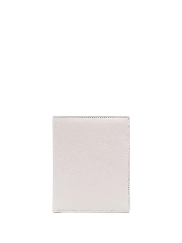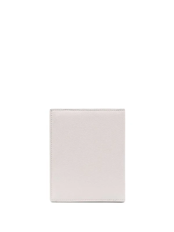Logo interne embossé, fentes pour carte, bordures à coutures apparentes. Couleur : blanc. Matière : cuir.