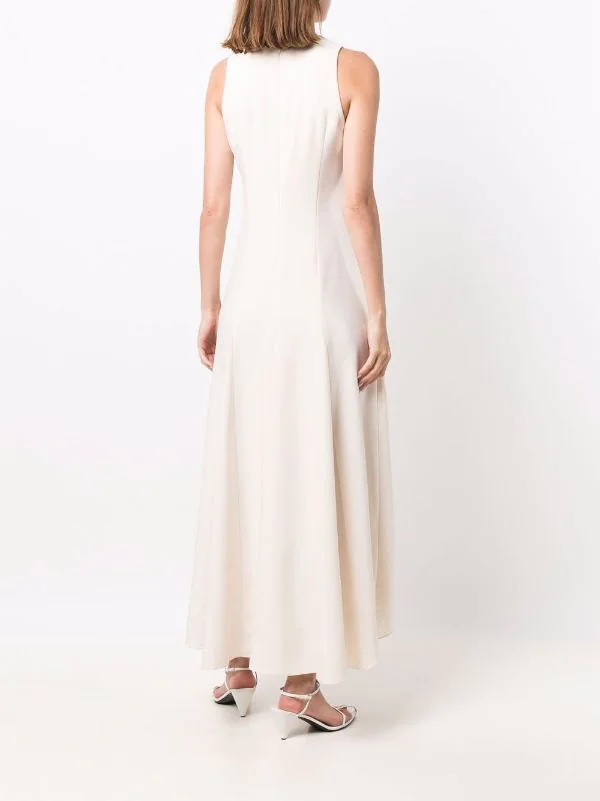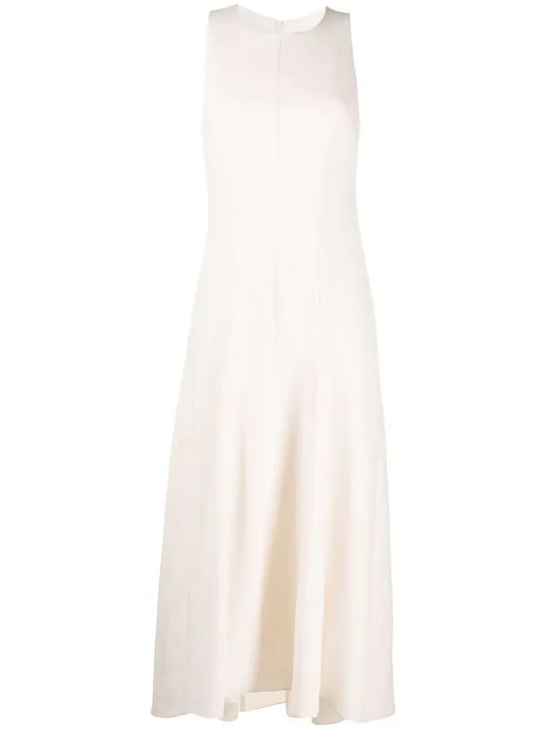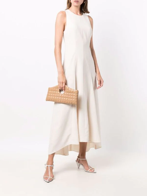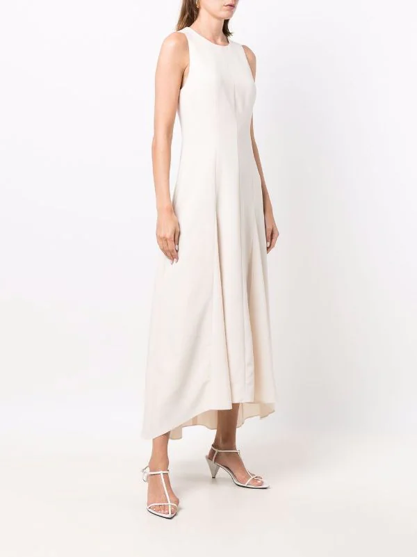 Construction stretch, encolure ronde, design sans manches, ourlet asymétrique, coupe longue.