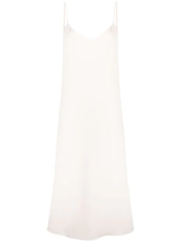 Design évasé, coutures ton sur ton, col v, bretelles fines ajustables.