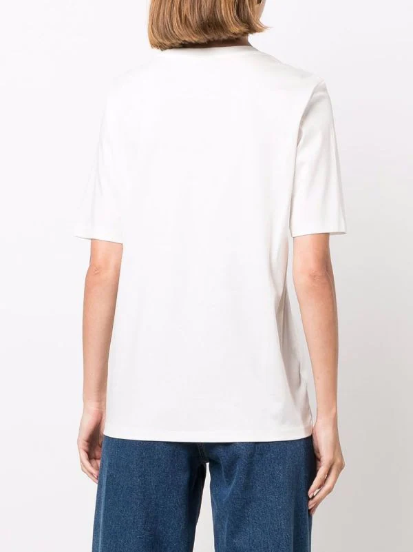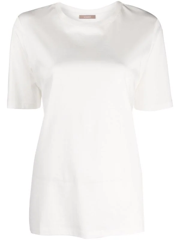 Maille fine, encolure ronde, manches courtes, ourlet droit. Matière : coton.