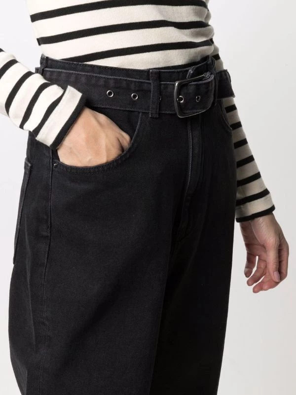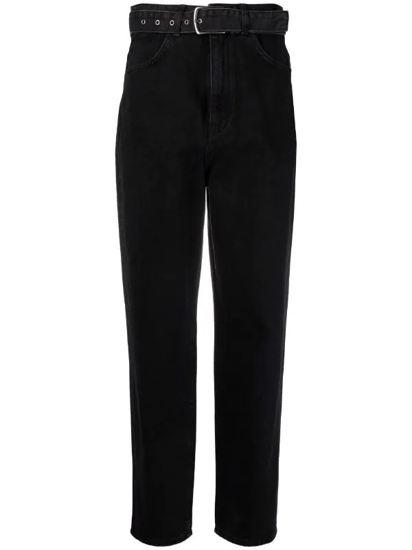 Taille ceinturée, passants de ceinture, deux poches passepoilées avant, poches arrière plaquées. Couleur : noir. Matière : coton.