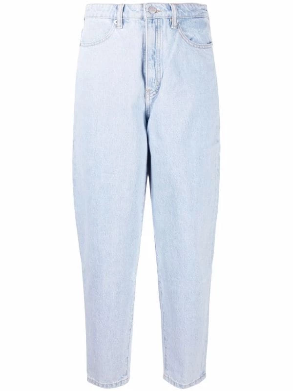 Taille haute, passants de ceinture, fermeture boutonnée, coupe fuselée, poches arrière kangourou. Matière : coton.
