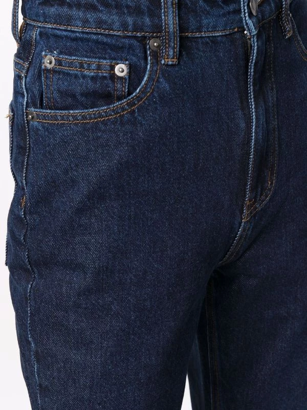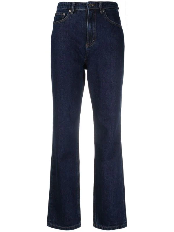 Coupe droite, taille haute, fermeture à zip et boutons sur le devant, poches plaquées latérales, passants de ceinture. Matière : coton.