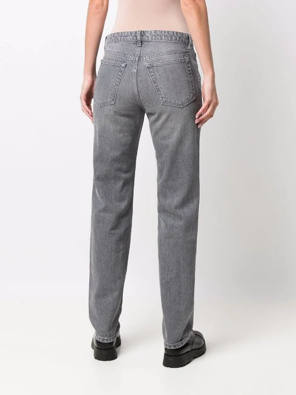 Taille basse, passants de ceinture, fermeture à zip et boutons sur le devant, cinq poches classiques, coupe droite. Couleur : gris. Matière : coton.