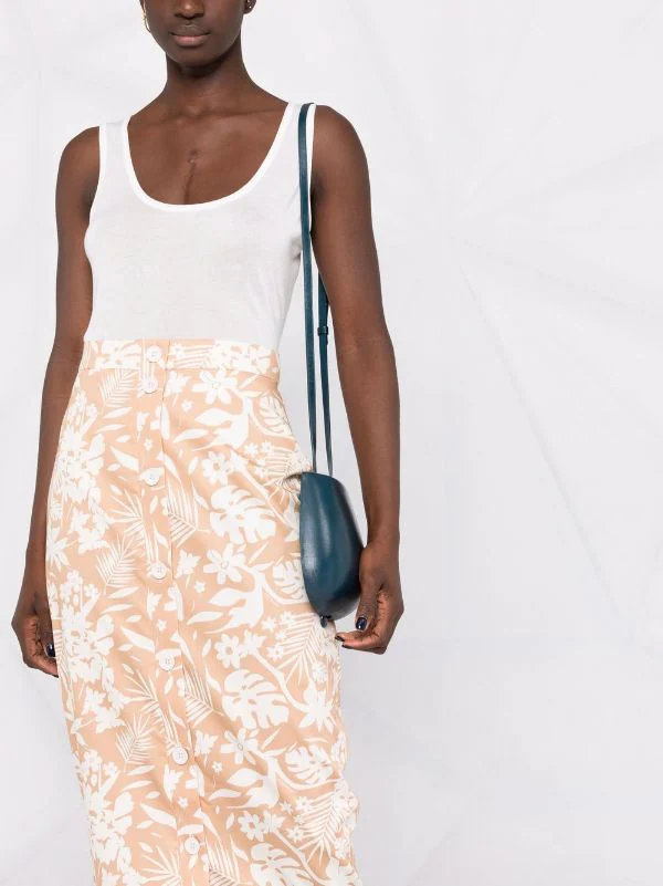 Motif de fleurs, taille haute, boutonnière sur le devant.