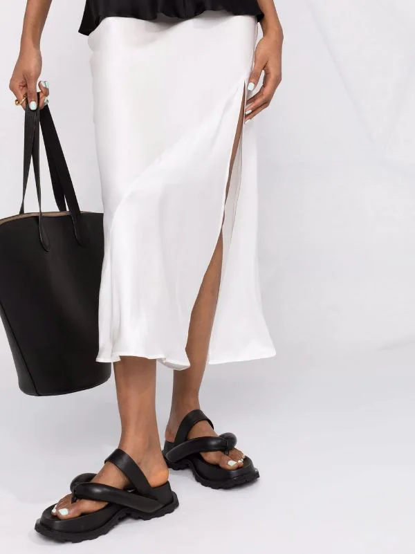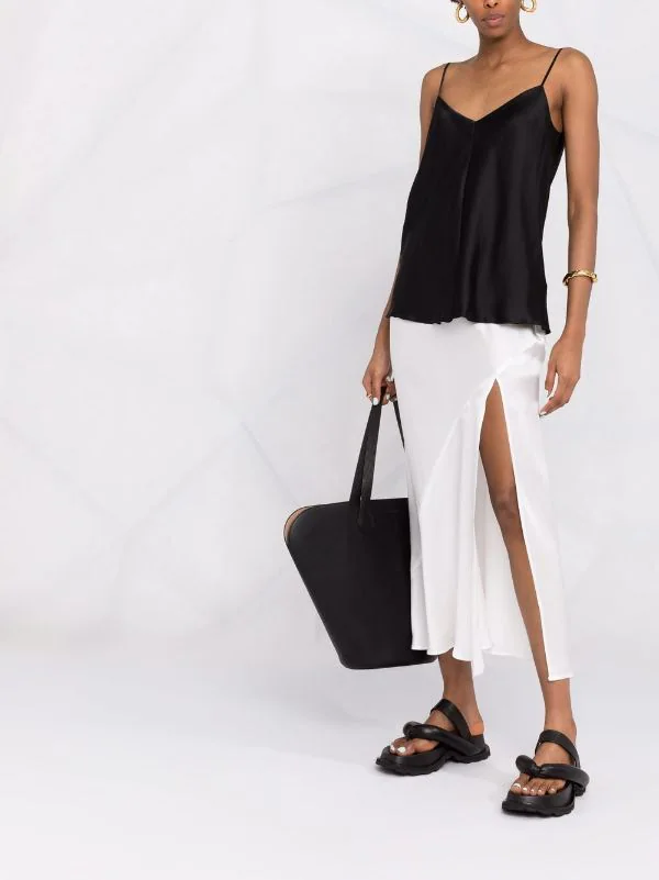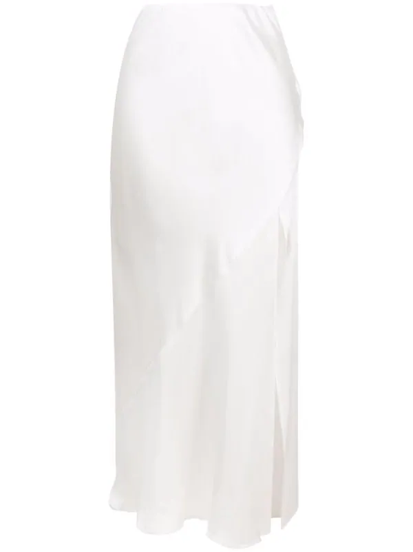 Fente latérale, taille haute, ourlet droit. Matière : soie.