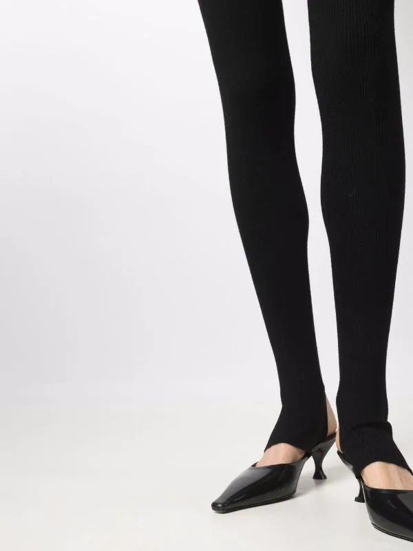 Design ton sur ton, taille haute, détails de sous-pieds. Couleur : noir. Matière : mérinos.