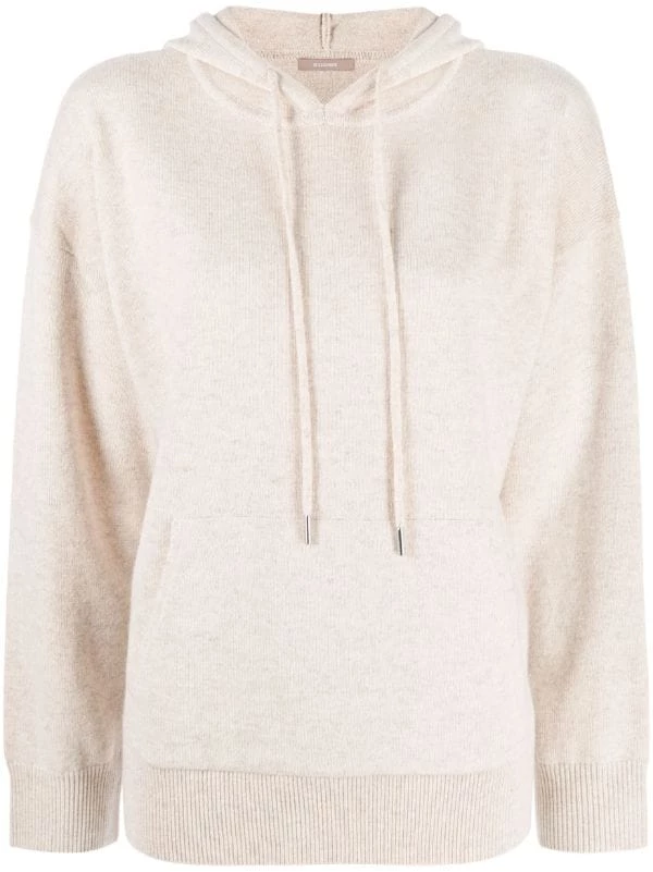 Capuche à lien de resserrage, épaules tombantes, poche plaquée sur le devant, manches longues, ourlet droit, finitions nervurées.