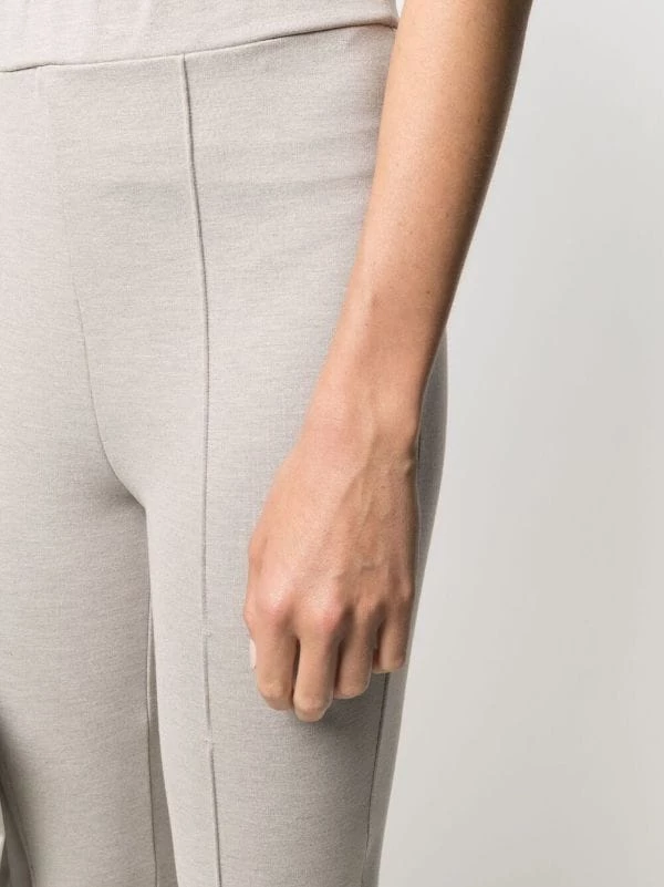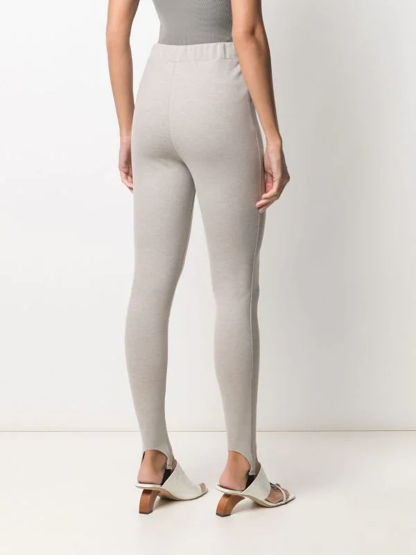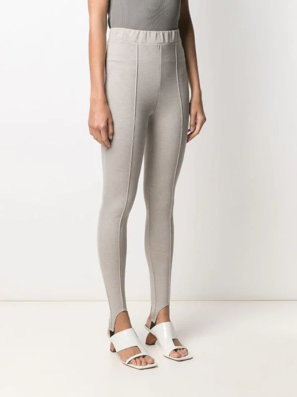 Coupe slim, détails de sous-pieds, taille haute, ceinture élastique.