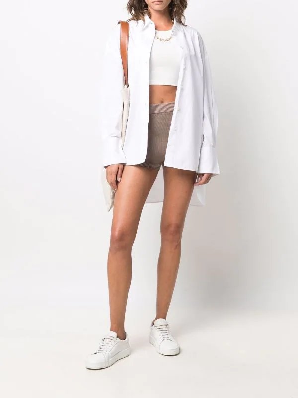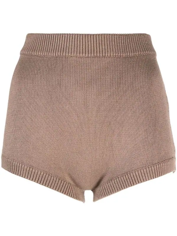 Bord en maille côtelée, construction stretch, taille haute. Couleur : marron.