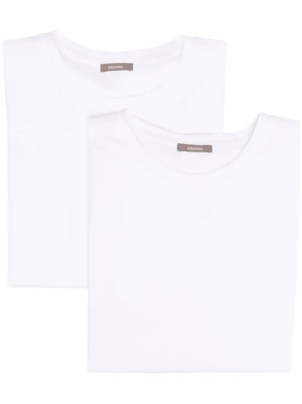 Lot de deux, encolure ronde, manches courtes, ourlet droit. Couleur : blanc. Matière : coton.