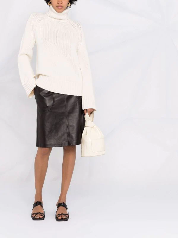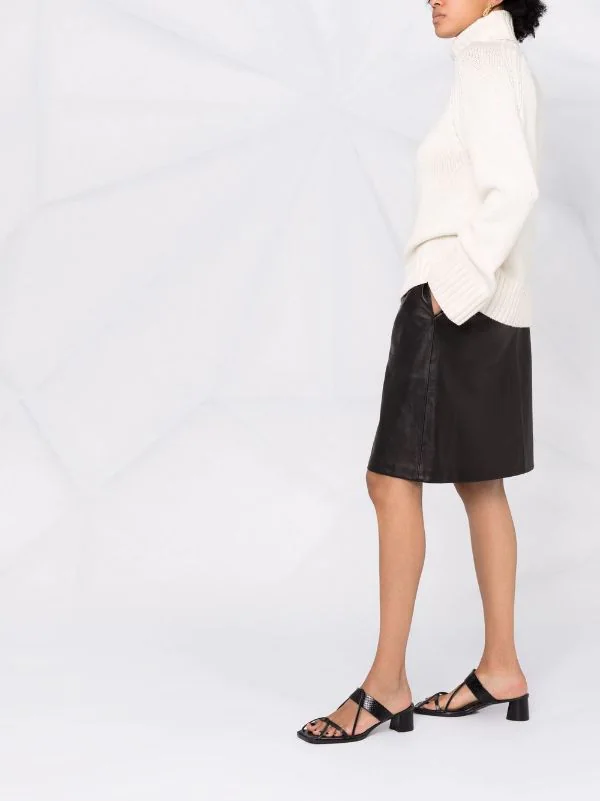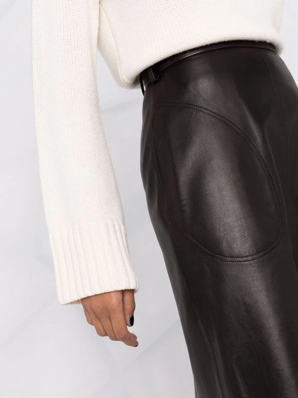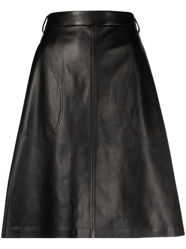 Fini mat, taille mi-haute, passants de ceinture, poches latérales kangourou, ourlet droit, fermeture arrière dissimulée. Couleur : noir. Matière : peau d’agneau.