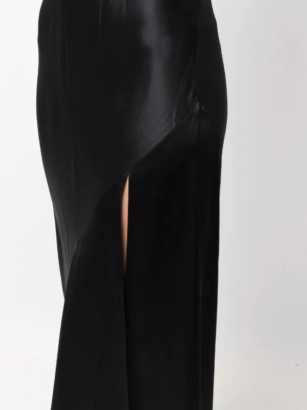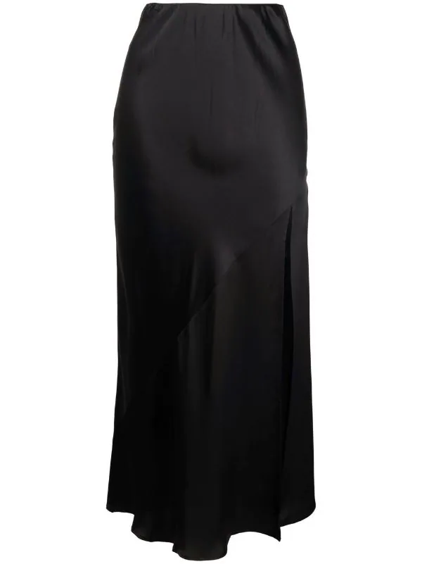 Modèle bicolore, taille haute, fente latérale, coupe mi-longue. Couleur : noir. Matière : soie.