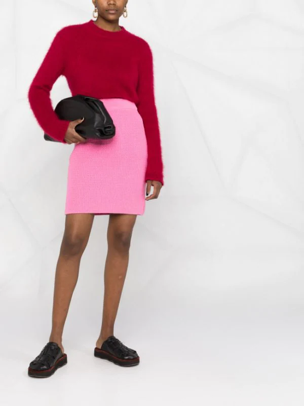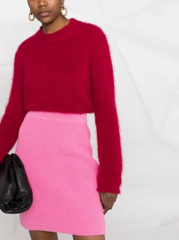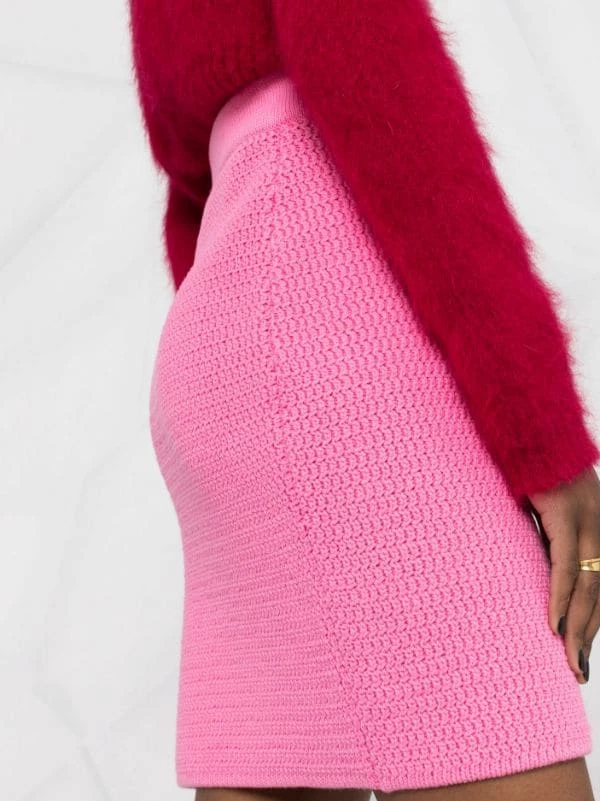Design en maille, taille haute, ceinture élastique. Couleur : rose. Matière : coton.