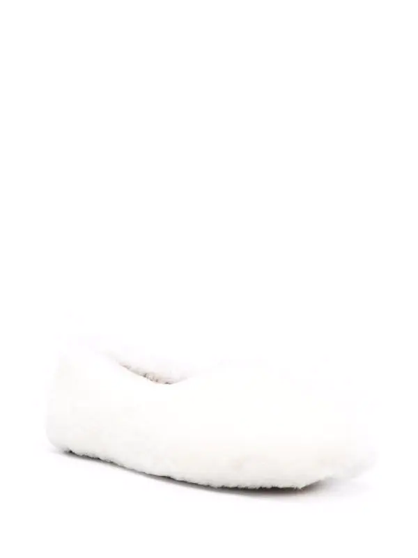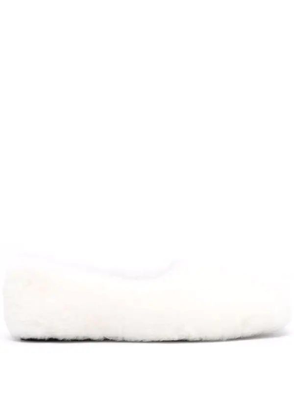 Blanc, finitions en peau lainée, design à enfiler, semelle plate en cuir, semelle intérieure à logo.
