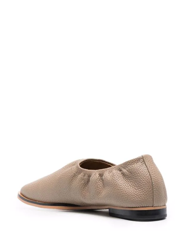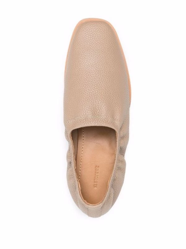 Texture grainée, bout carré, chevilles élastiques, semelle intérieure à logo, semelle plate en caoutchouc. Matière : cuir.
