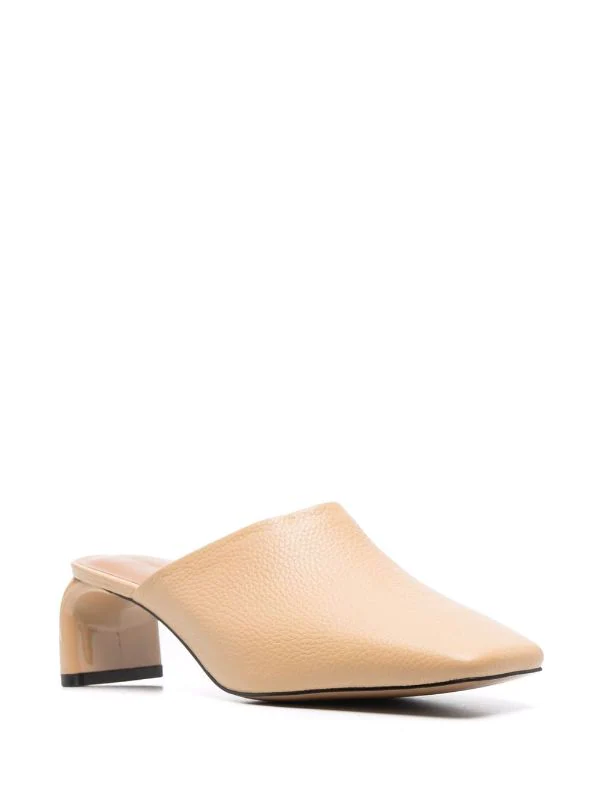 Texture grainée, bout carré, design à enfiler, petit talon. Matière : cuir.
