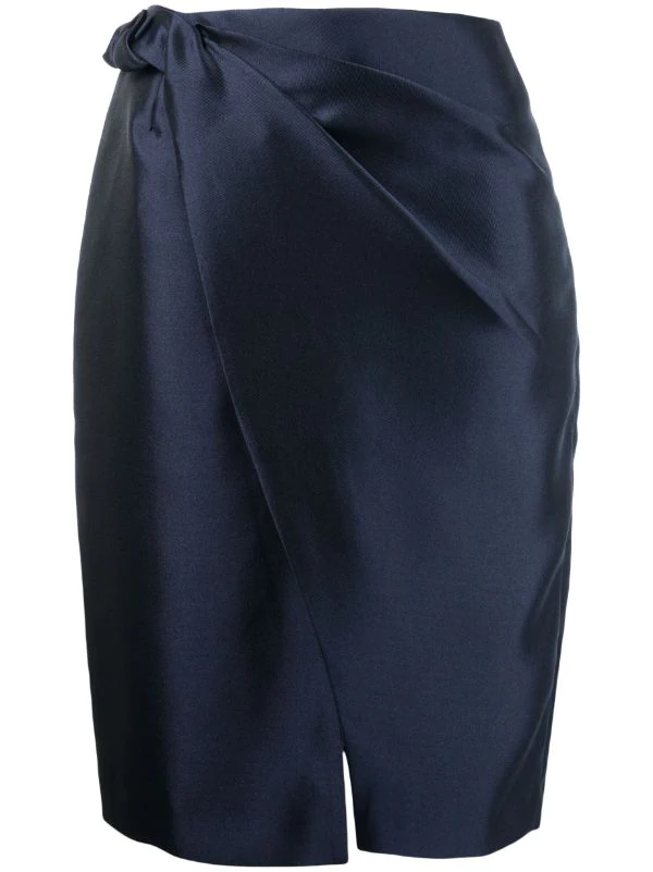 Design ton sur ton, taille haute, détail de nœud, détail de fente, fermeture zippée à l’arrière.