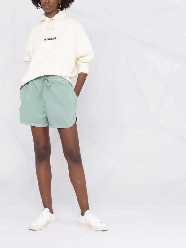 Lien de resserrage à la taille, poches latérales fendues, ourlet incurvé. Matière : coton.