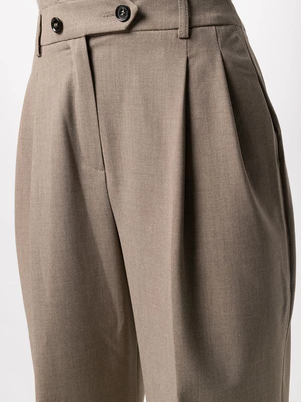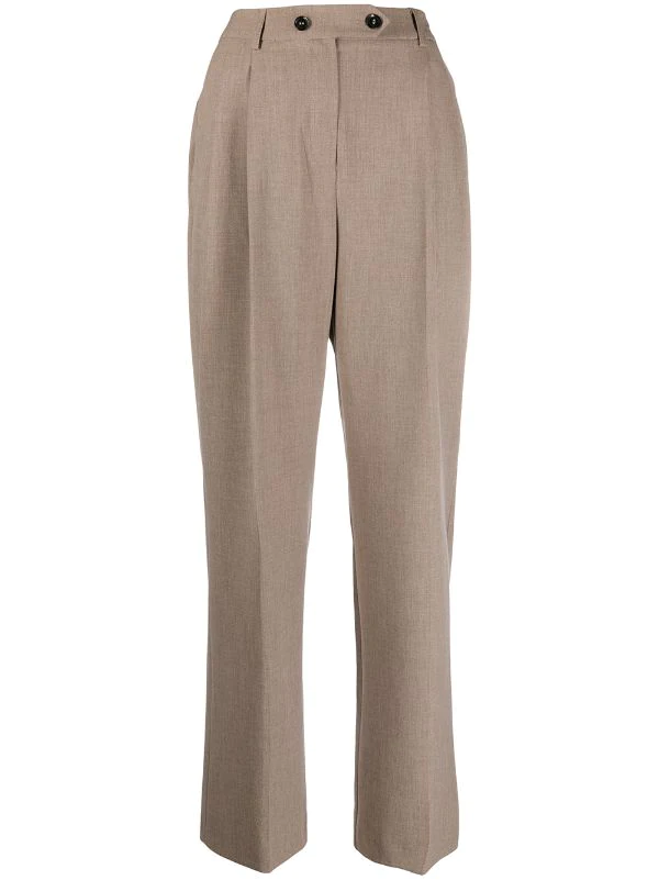 Fermeture boutonnée, passants de ceinture, deux poches latérales passepoilées, poches arrière passepoilées, coupe droite.