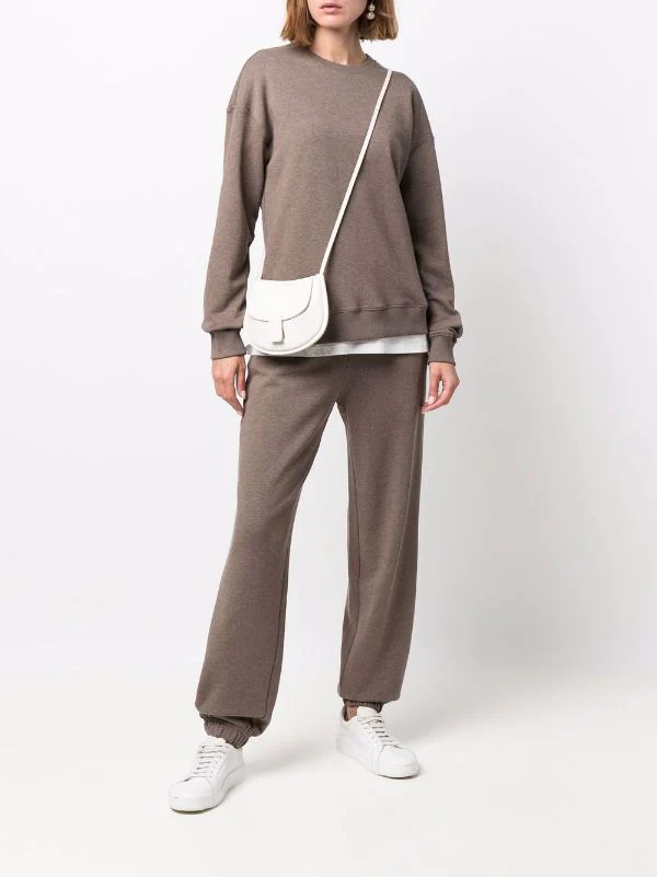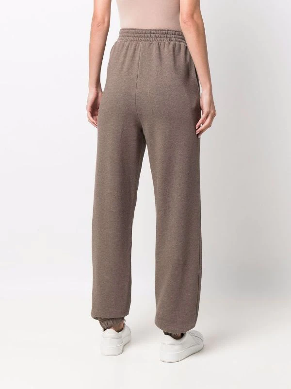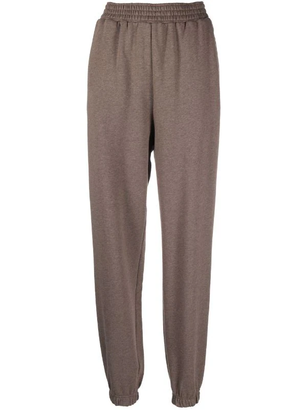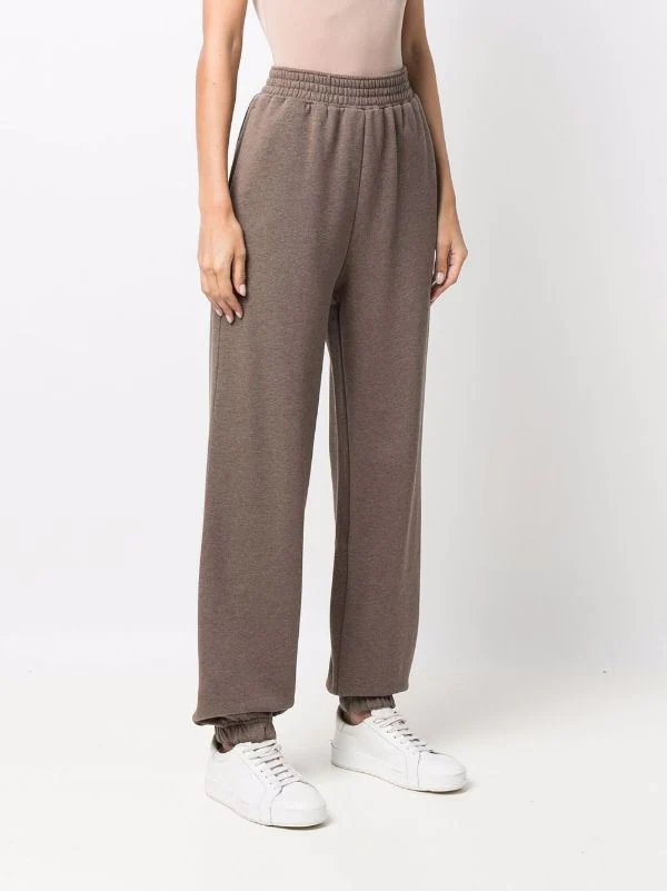 Taille haute, ceinture élastique, chevilles élastiques, coupe droite. Couleur : marron. Matière : coton.