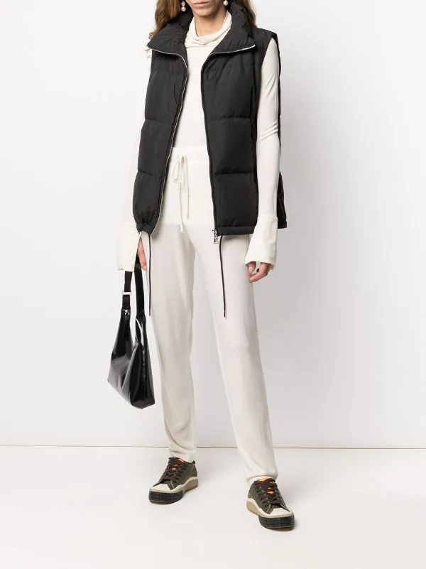 Design tricoté, lien de resserrage à la taille, poches latérales fendues, coupe droite. Matière : cachemire.