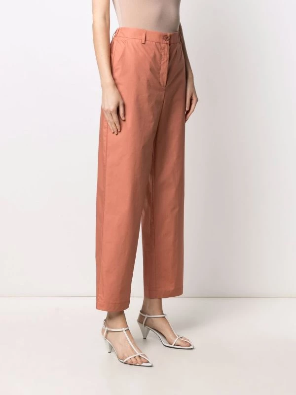 Ceinture élastique, passants de ceinture, boutonnière sur le devant, passants de ceinture, deux poches latérales fendues, poche arrière passepoilée, coupe courte. Couleur : orange. Matière : coton.