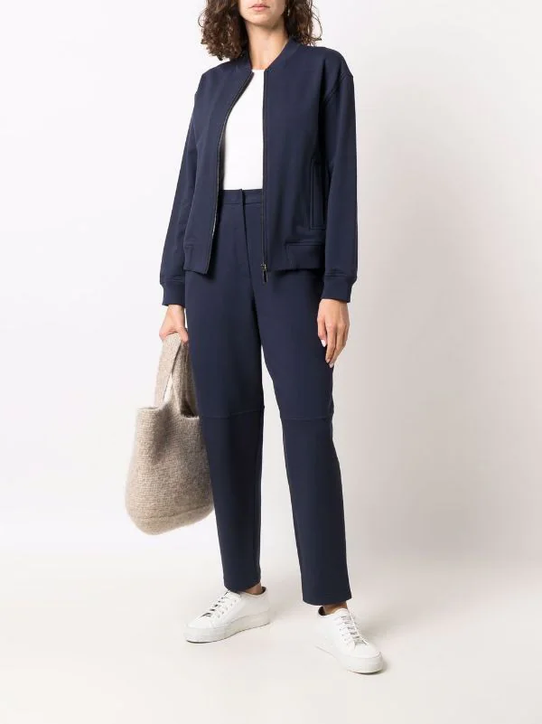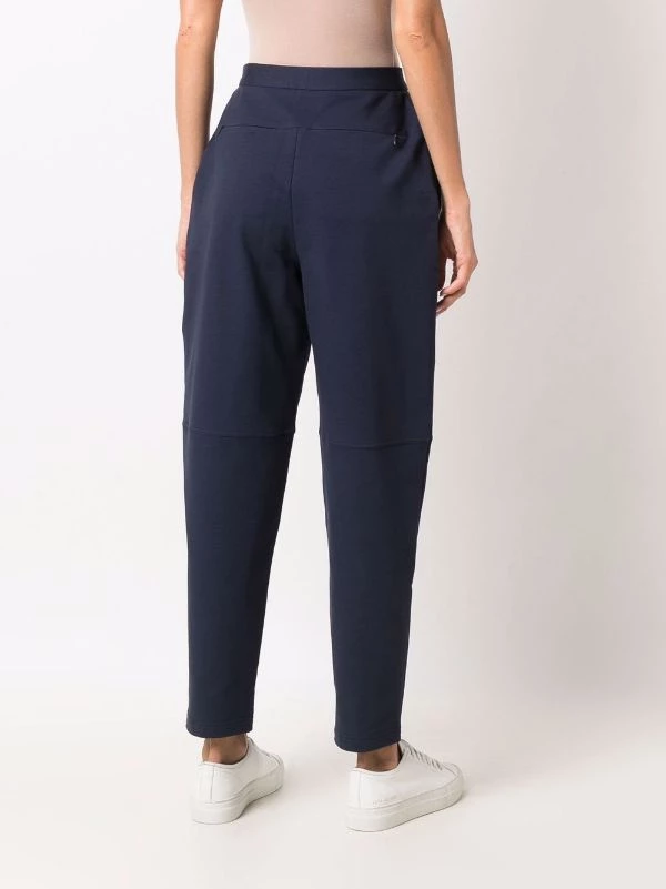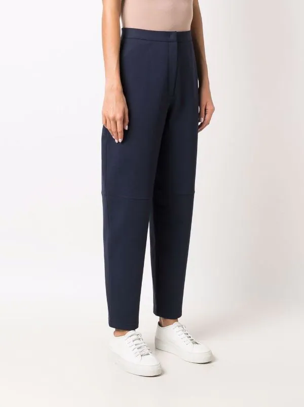 Coupe fuselée, boucle déployante dissimulée, taille haute, deux poches arrière zippées.
