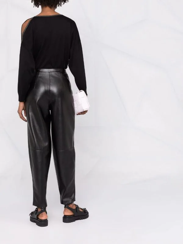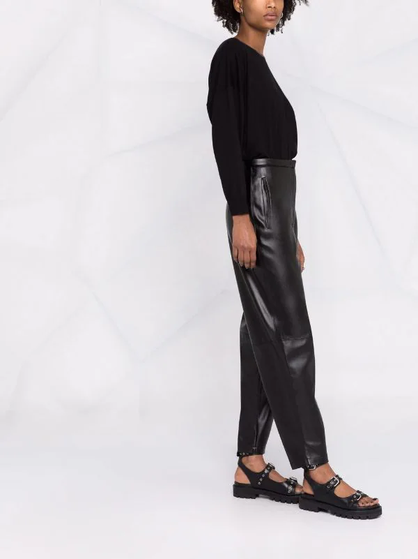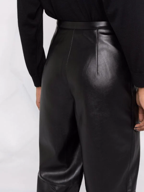 Design ton sur ton, fini poli, taille haute, fermeture à zip et boutons sur le devant, deux poches latérales fendues. Couleur : noir.