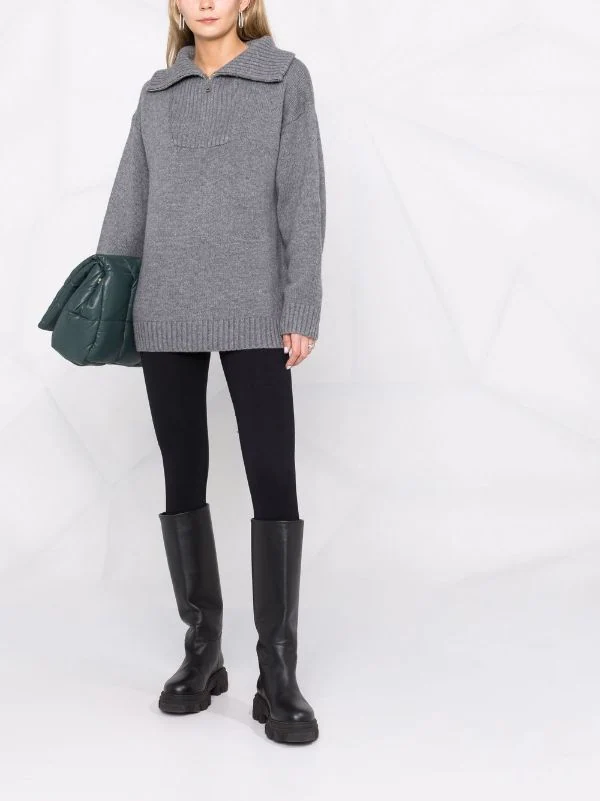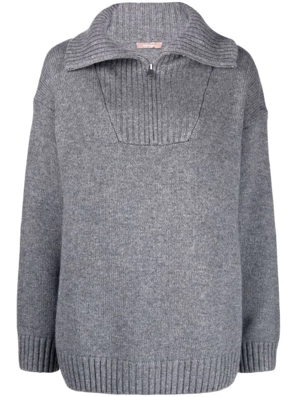 Détail nervuré, col montant, fermeture zippée devant, manches longues, ourlet droit. Couleur : gris.