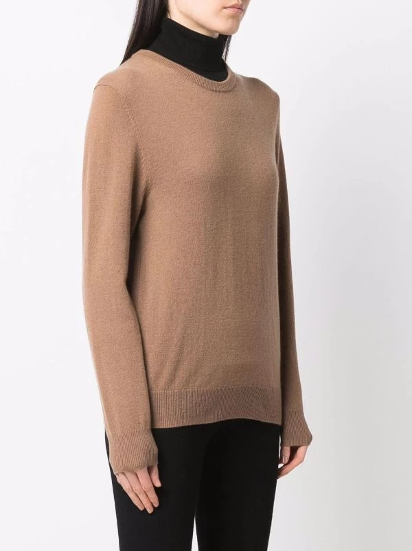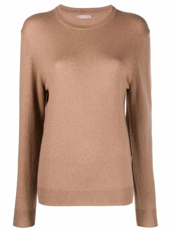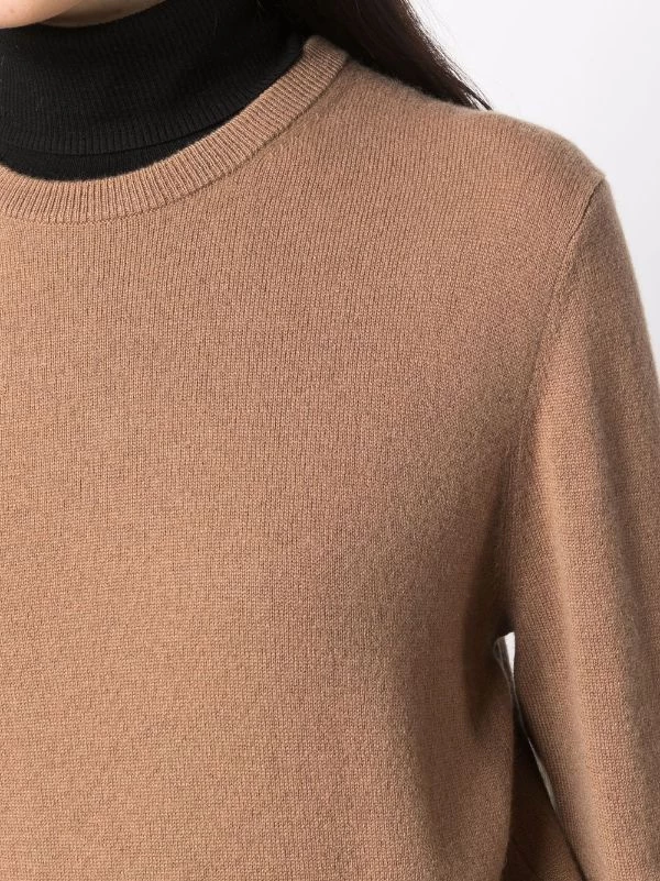 Design en maille, finitions nervurées, encolure ras du cou, manches longues. Matière : cachemire.