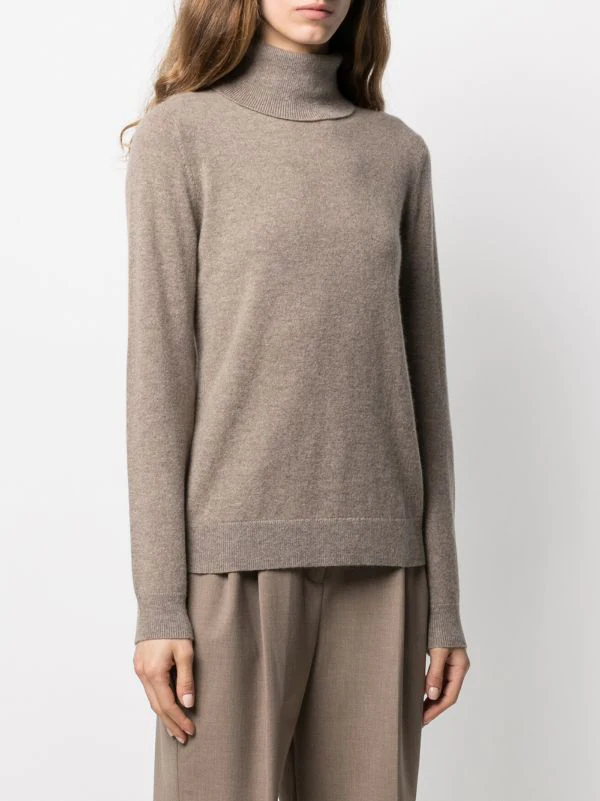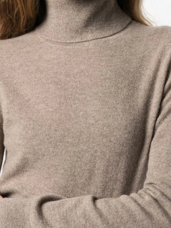 Maille fine, col roulé, manches longues, ourlet nervuré. Matière : cachemire.