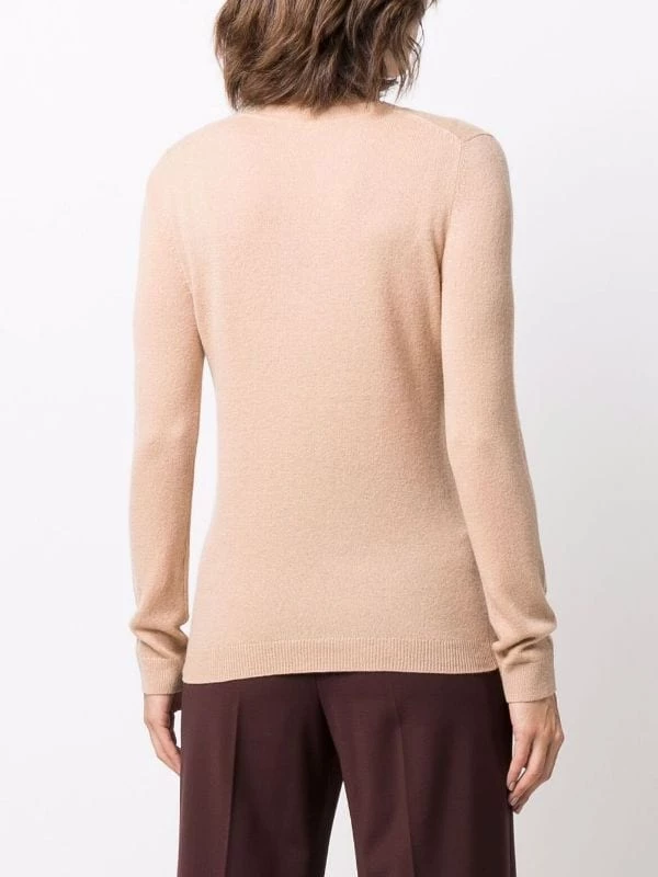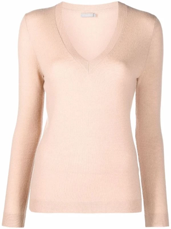 Maille fine, col v, manches longues, poignets nervurés, ourlet nervuré. Matière : cachemire.
