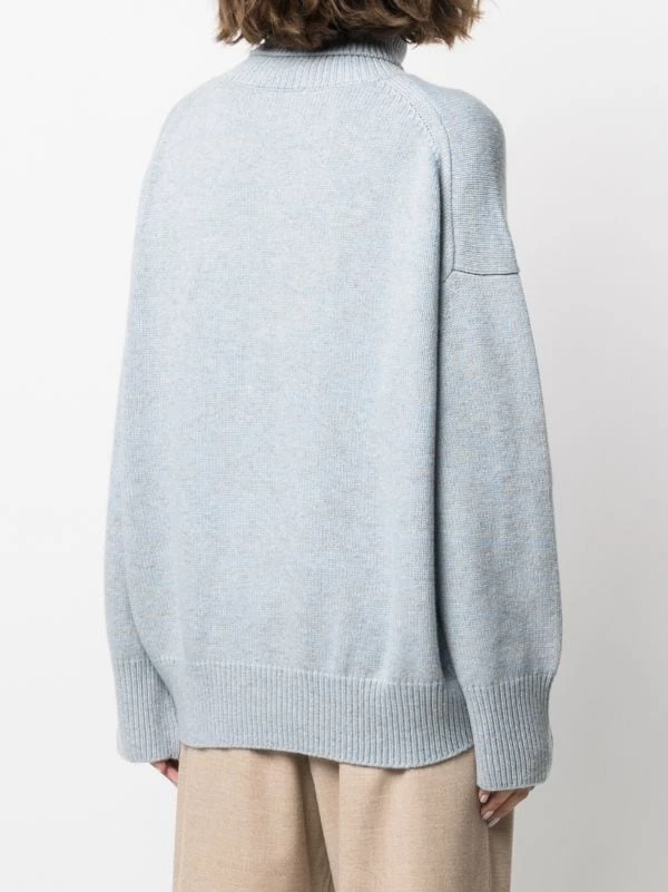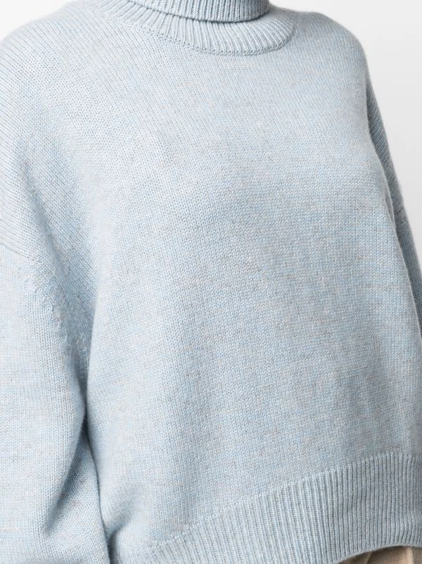 Détail nervuré, col roulé, effet d’épaules descendues, manches longues.