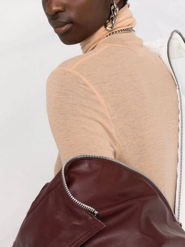 Maille fine, col roulé, manches longues, ourlet droit. Matière : mérinos.
