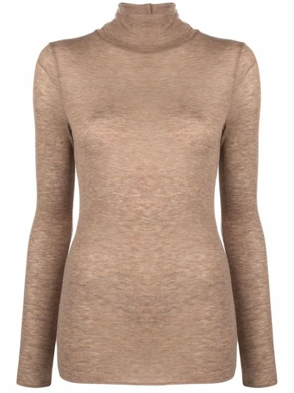 Maille fine, col roulé, manches longues, ourlet droit. Matière : mérinos.