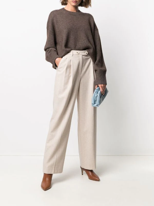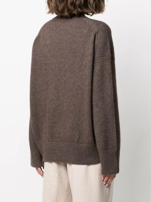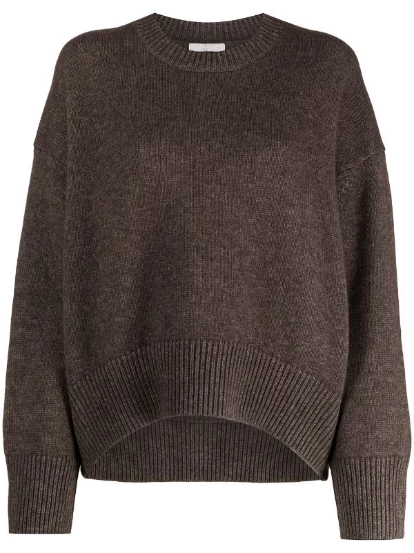 Maille nervurée, encolure ronde, manches longues, ourlet droit. Couleur : Marron.