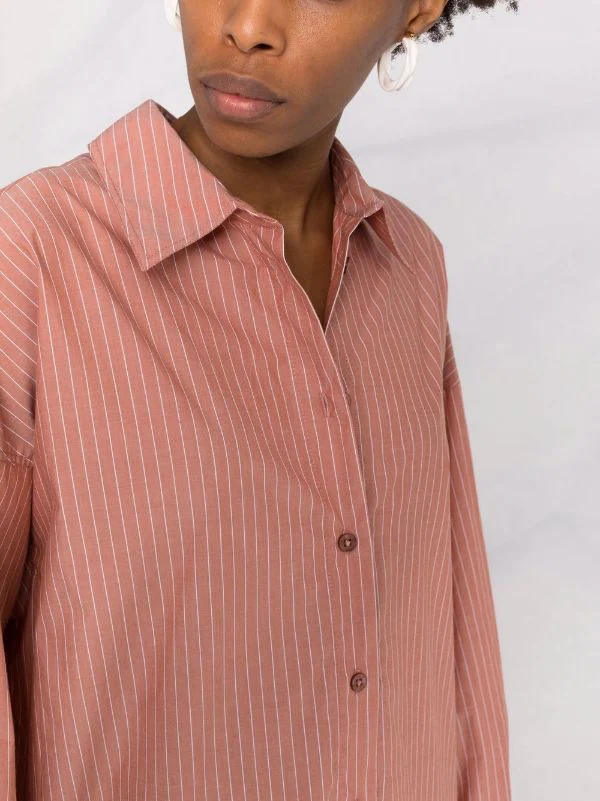 Fentes latérales, ourlet incurvé, boutonnière sur le devant, col classique, manches longues, poignets boutonnés, ourlet incurvé. Matière : coton.