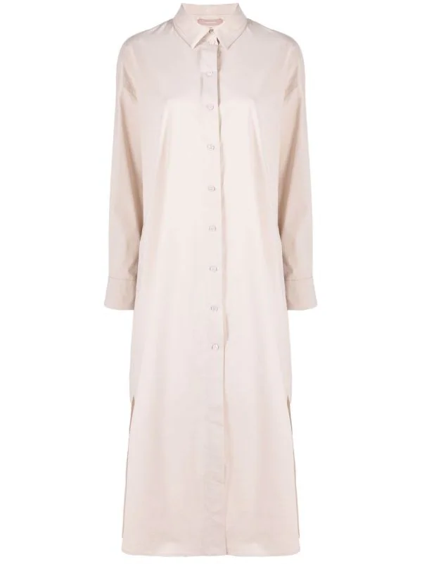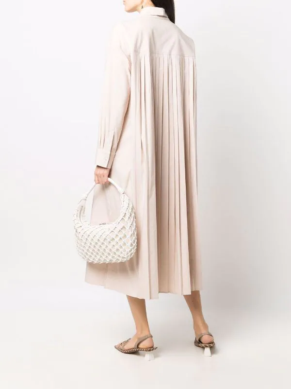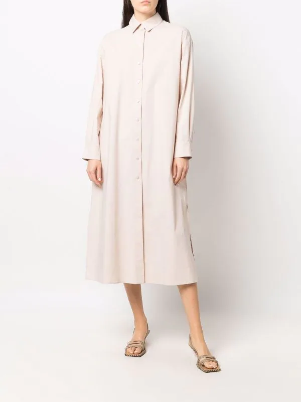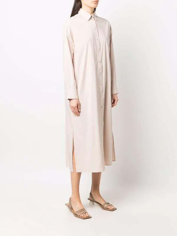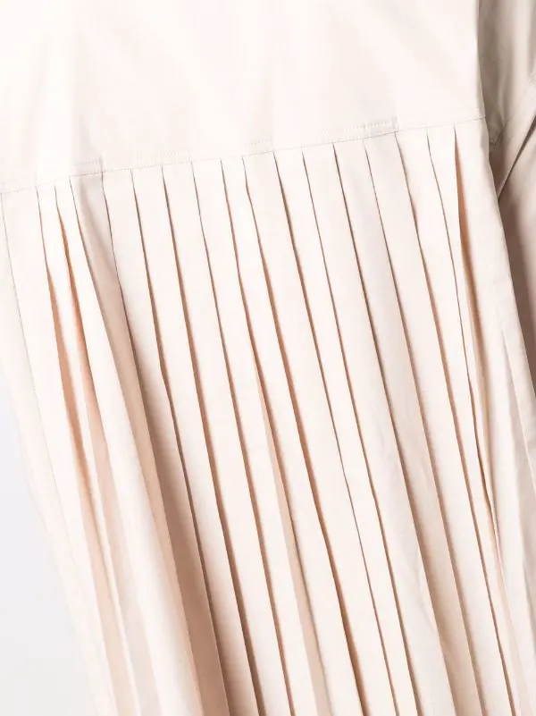 Détails de plis, col boutonné, manches longues, manches à poignets boutonnés.