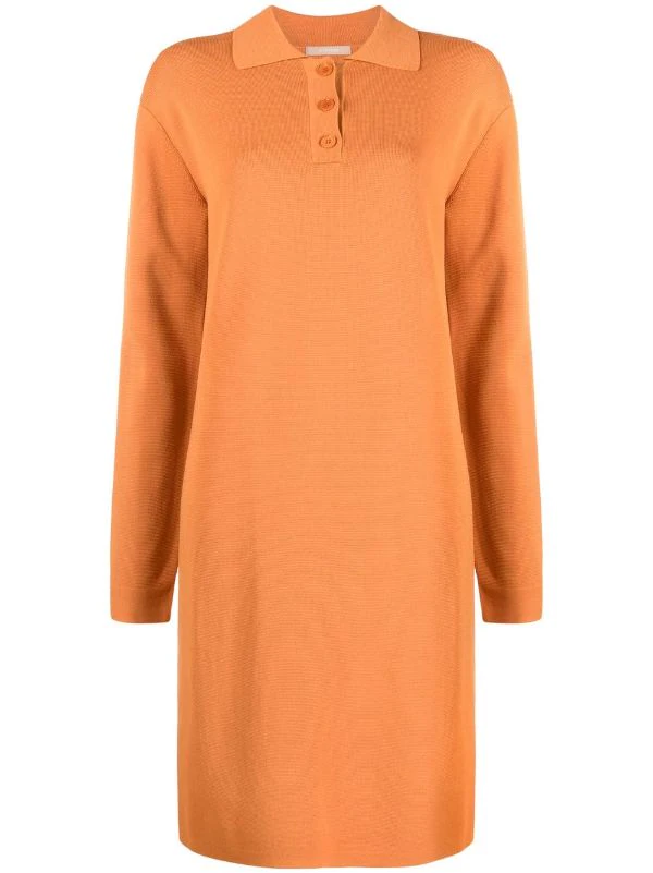 Col polo, boutonnière sur le devant, design tricoté, coupe évasée, manches longues. Couleur : orange.