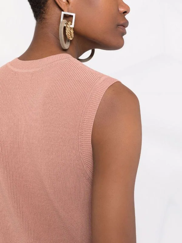 Maille fine, bord en maille côtelée, encolure ras du cou, design sans manches, jupe à godet.