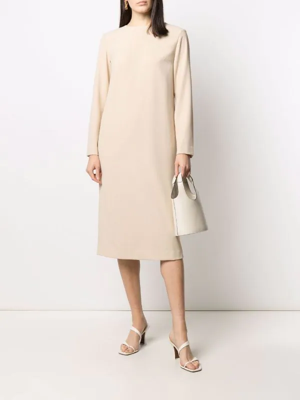 Fente à l’arrière, encolure ronde, manches longues, coupe mi-longue.