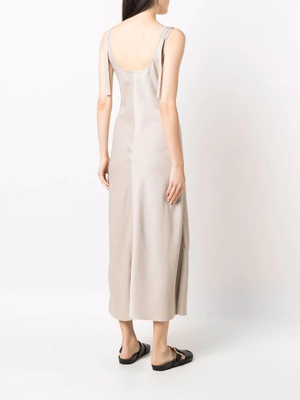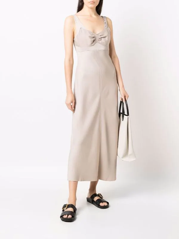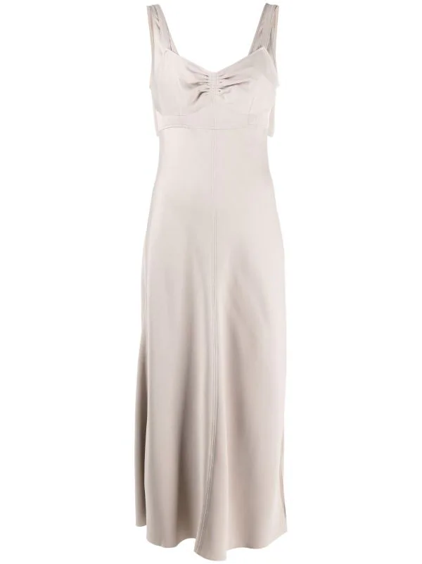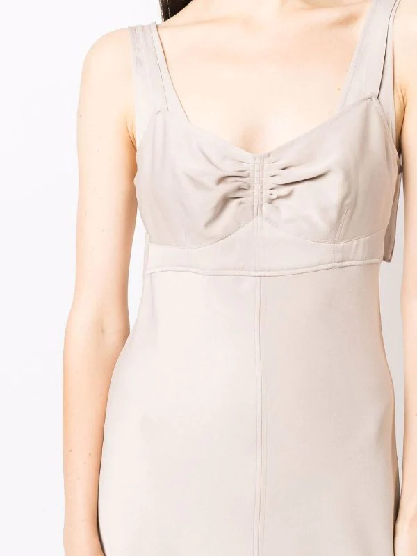 Design à empiècements, encolure arrondie, détails de fronces, design sans manches, coupe évasée.