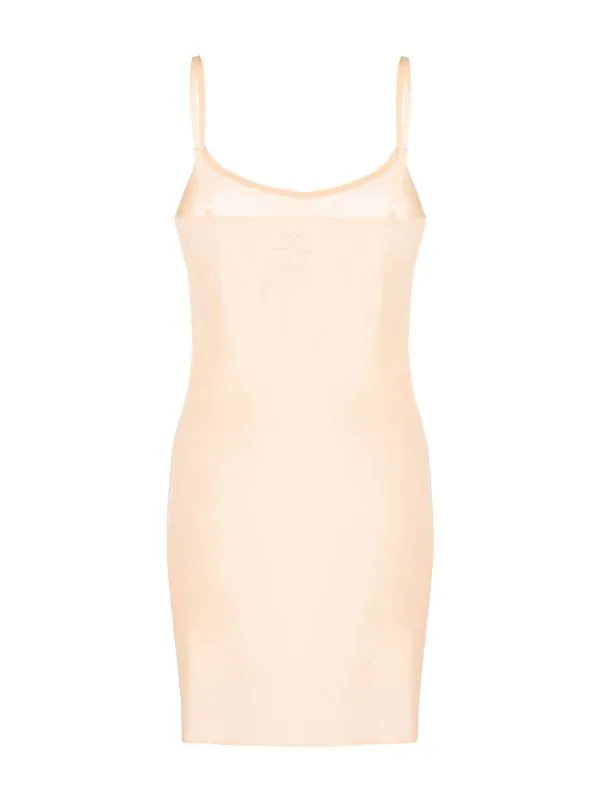 Forme nuisette, construction stretch, encolure arrondie, deux brides porté épaule ajustables, longueur au dessus du genou.