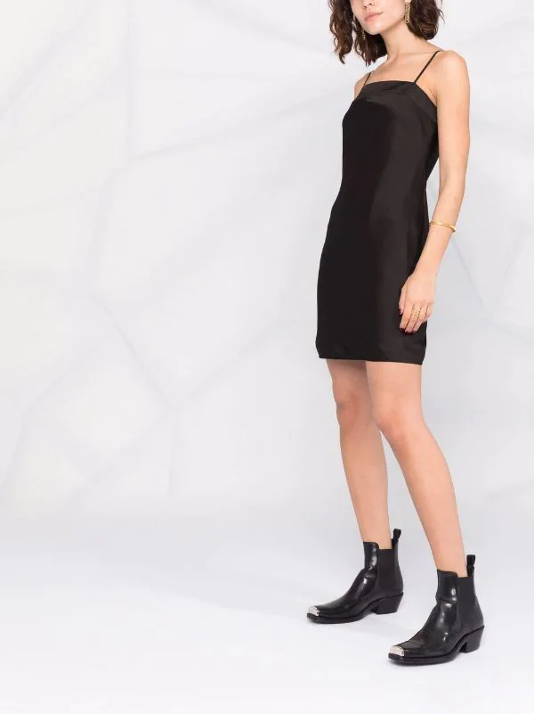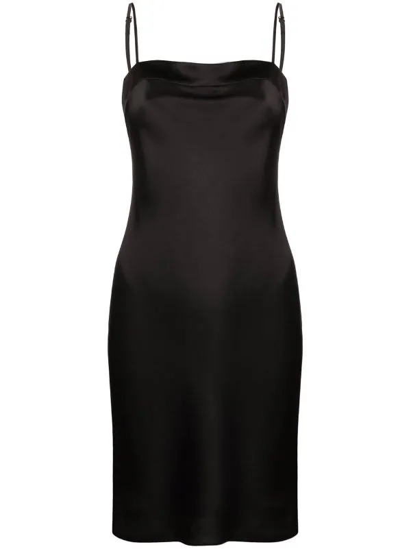 Fini satiné, bretelles fines ajustables, ourlet droit. Couleur : noir.