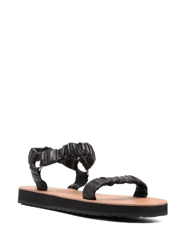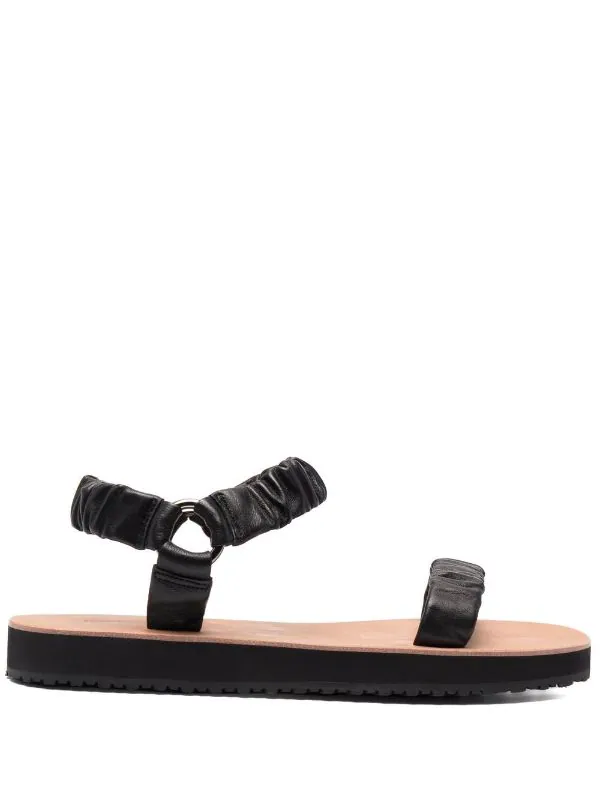Design à enfiler, bout ouvert, bride cheville, semelle intérieure griffée, semelle en caoutchouc. Couleur : noir. Matière : cuir.