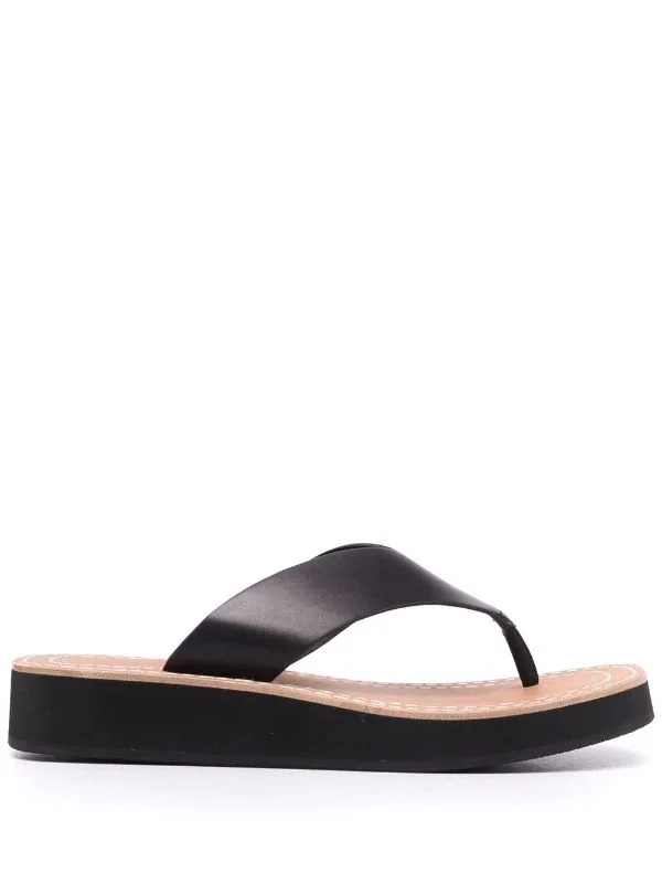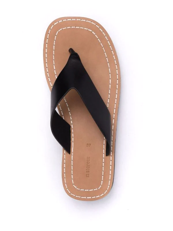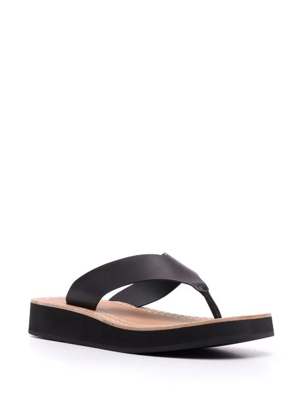 Entre-doigts, bout ouvert, semelle intérieure à logo, semelle à plateforme. Couleur : noir. Matière : cuir.