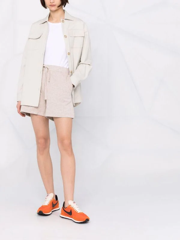 Lien de resserrage à la taille, deux poches latérales fendues, design ton sur ton. Matière : coton.