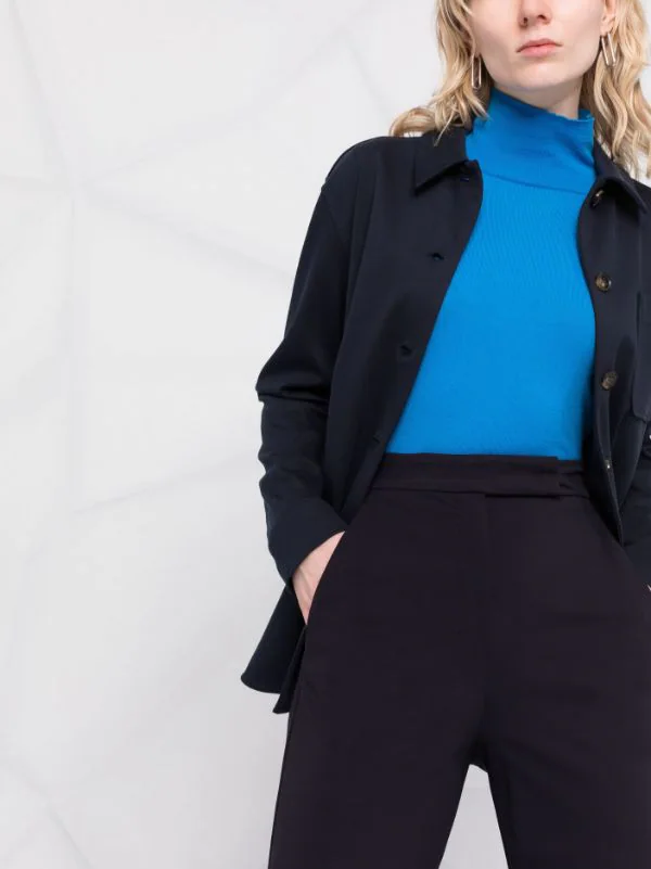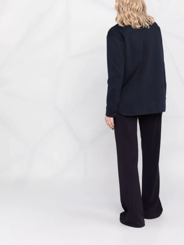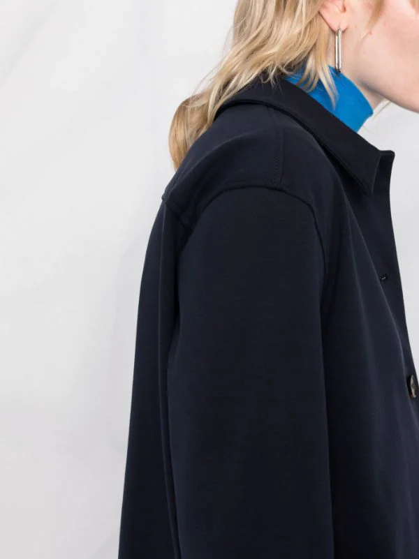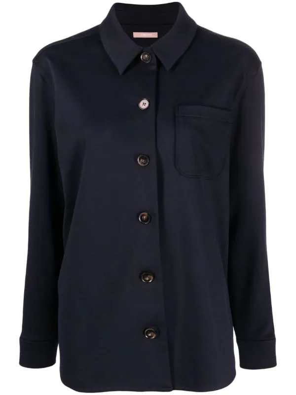 Col italien, boutonnière sur le devant, manches longues, poignets boutonnés, poche poitrine plaquée, ourlet incurvé. Matière : coton.