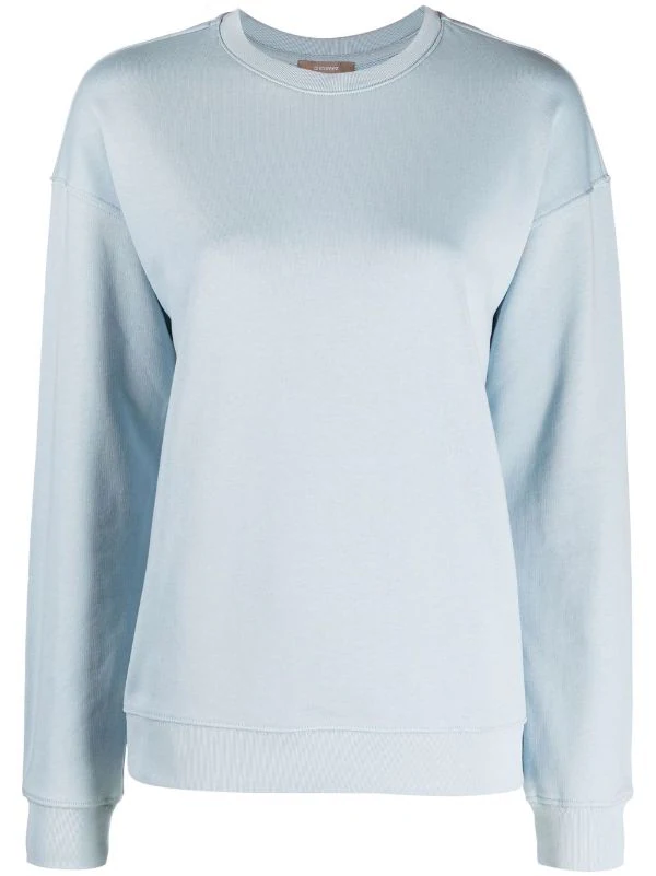 Maille fine, encolure ras du cou, manches longues, ourlet nervuré. Matière : coton.